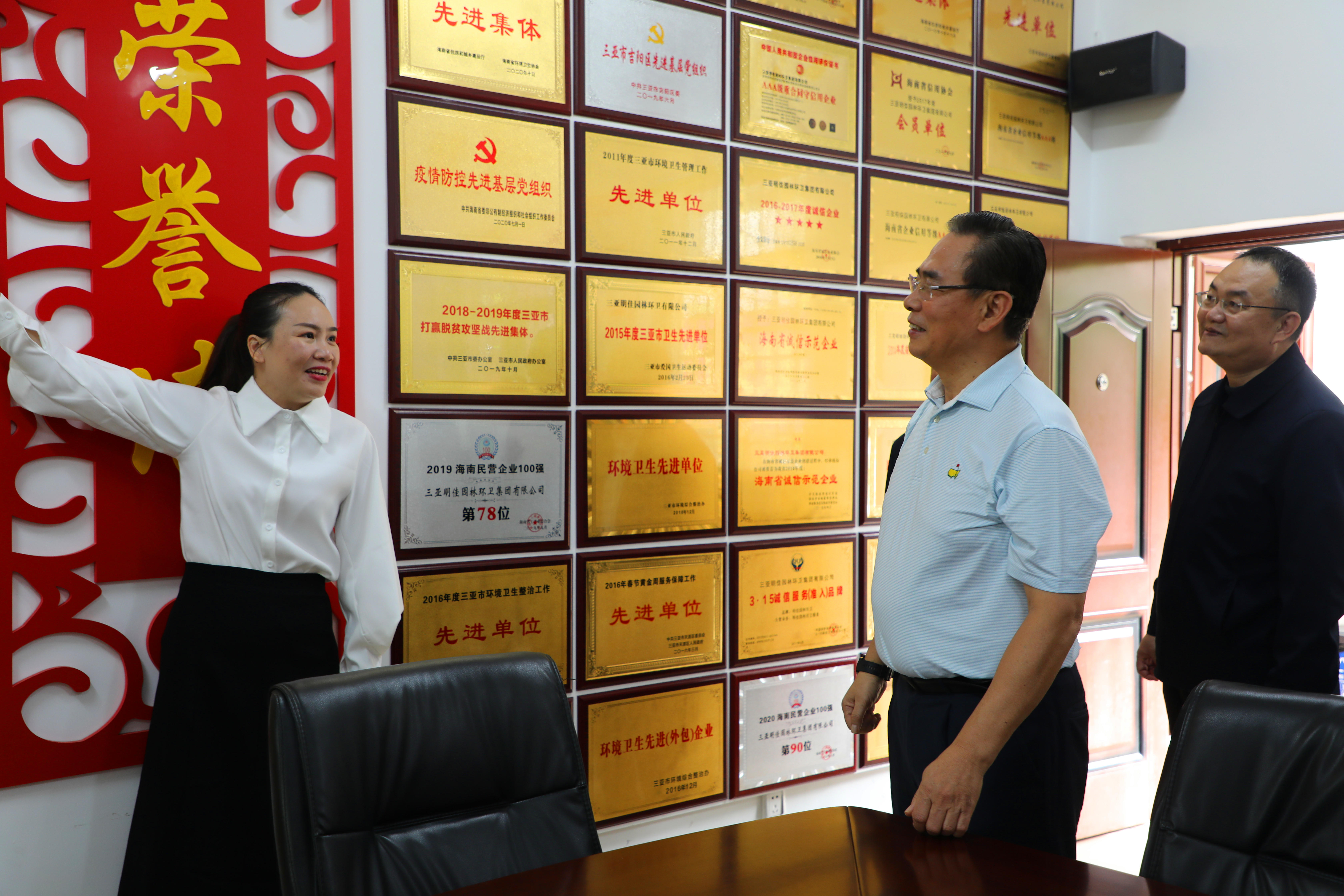 蔡副主席一行來到明佳集團(tuán)職工之家,工會主席高斐斐介紹職工書屋由三亞市總撥?睢⒓瘓F(tuán)黨支部共同出資建立,現(xiàn)藏書一千余冊,并配備投影儀、電腦、電子閱覽器等設(shè)備,蔡副主席對職工書屋的建設(shè)表示了充分的肯定。來到企業(yè)榮譽(yù)墻面前,高斐斐介紹了近期工會工作取得的海南省工人先鋒號等榮譽(yù),蔡副主席對工會取得的成績表示了極大的贊賞。