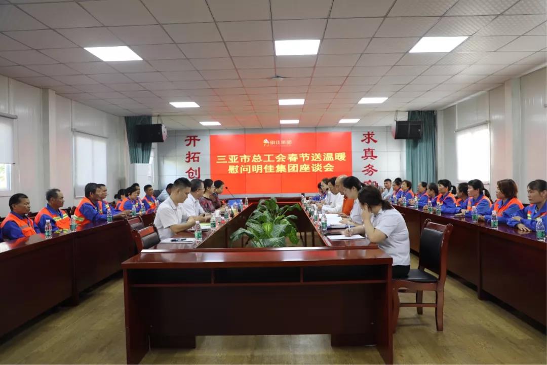 最后,慰問團(tuán)一行來到三亞明佳園林環(huán)衛(wèi)集團(tuán)有限公司召開座談會。會上,慰問團(tuán)展開討論了高齡、高風(fēng)險(xiǎn)環(huán)衛(wèi)從業(yè)人員的權(quán)益保障問題,并詳細(xì)了解了企業(yè)職工在工作、生活中存在的問題,并認(rèn)真聽取他們的訴求和建議。